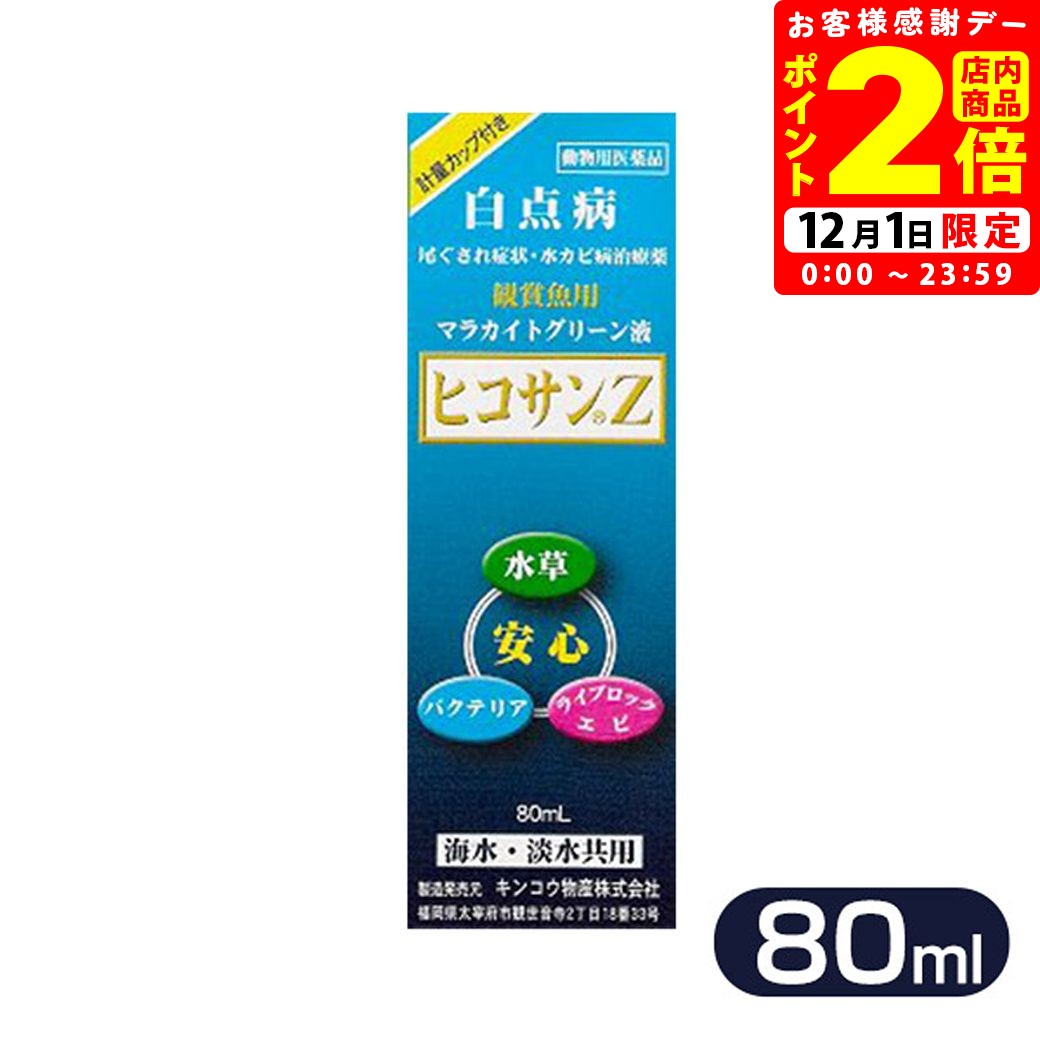 【送料無料】 病魚薬 魚病薬 マラカイトグリーン液 ヒコサンZ 80ml 【白点病・尾ぐされ・水カビ病】 熱帯魚 金魚 薬 動物用医薬品 同梱・代引・日時指定不可