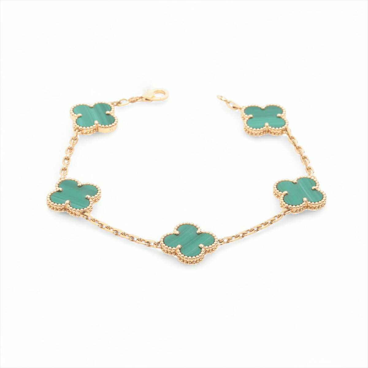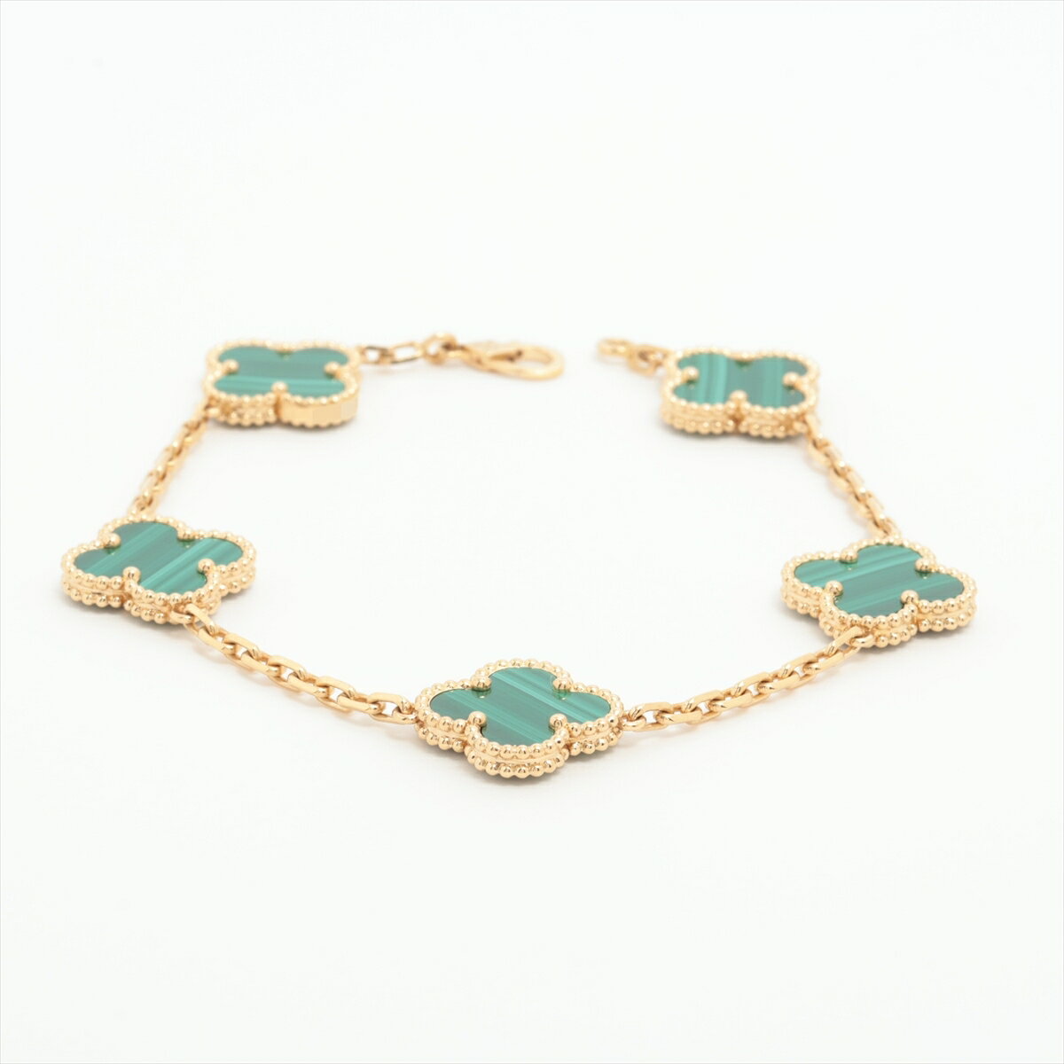 【中古】ヴァンクリーフ&アーペル ヴィンテージアルハンブラ 5P マラカイト ブレスレット 750(YG) 12.8g 石照りなし VCARL80900