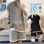 上下セット セットアップ メンズ 半袖 スウェット 薄手 ハーフパンツ 総柄 英字 ルームウェア 部屋着 カジュアル ゆったり かっこいい プレゼント