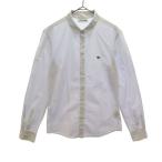 ラコステ LACOSTE マルチストライプバンドカラーシャツ 長袖 バンドカラー ストライプ柄 ワッペン 36 黄緑 CF9395