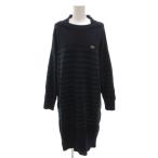 ラコステ LACOSTE ニット ワンピース ロング 長袖 36 紺 ネイビー ボーダー /FF レディース