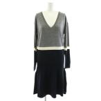 ラコステ LACOSTE 28 ニットワンピース ミモレ ロング Vネック ウール 40 グレー 白 ホワイト 黒 ブラック EF1940 /AN45 ■BM