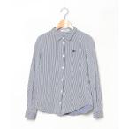 LACOSTE ラコステ ストライプ 長袖 レギュラーカラー シャツ 34 ロゴワッペン レディース 古着 中古