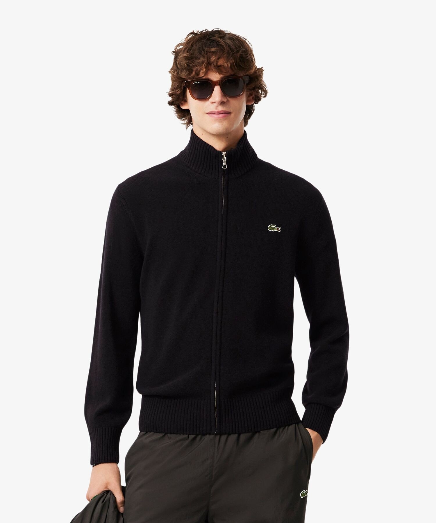 LACOSTE ハイネックフルジップ ウールニットセーター / ドライバーズニット ラコステ トップス ニット ブラック ネイビー グレー【送料無料】
