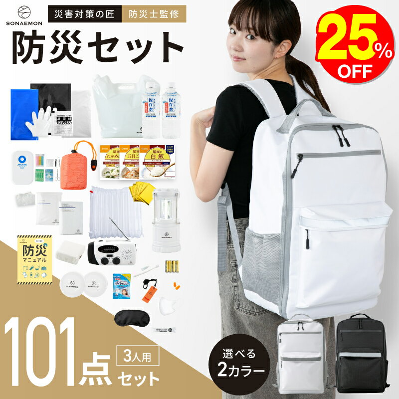 \期間限定25%OFF/【防災セット 防災リュック 3人用 101点セット 【 防災士監修 】 地震 備蓄米 個人用備蓄米 家庭用備蓄米 災害対策 防災用品 保存食 保存水 ラジオライト 多機能 非常用トイレ 自治体 防災リュックサック 防水 防寒 避難グッズ 防災士監修 女性