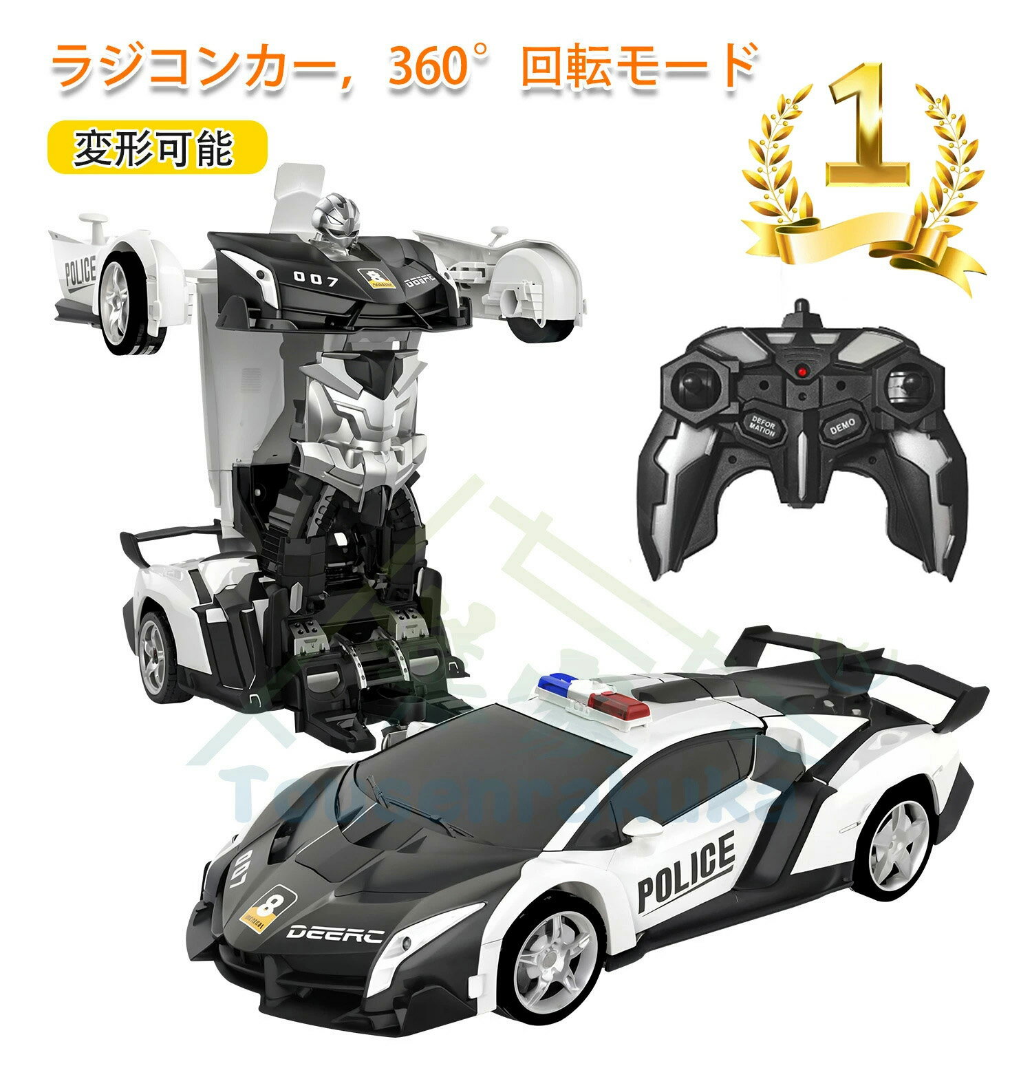 ラジコンカー 変形 ロボット 車 おもちゃ パトカー おもちゃ スタントカー ロボットに変身でき LED搭載 360度回転 リモコン RCカー