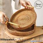 トレー ラタントレイ お盆 おぼん 2個セット トレイ かご 籐 ラタン おしゃれ 手織り お家カフェ ランチプレート 食器 丸