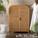 ラタン チェスト 幅80cm 天然木 かごめ編み ( 収納 棚 扉付き 脚付き リビング収納 籐 籐編み 籐製 かごめ )