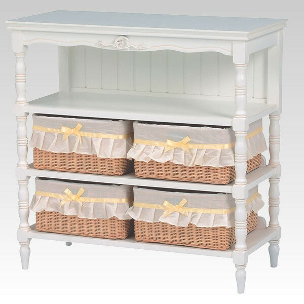 籐 ラタンチェスト ランドリー キャビネット 75幅2段4杯 ホワイト(白)色