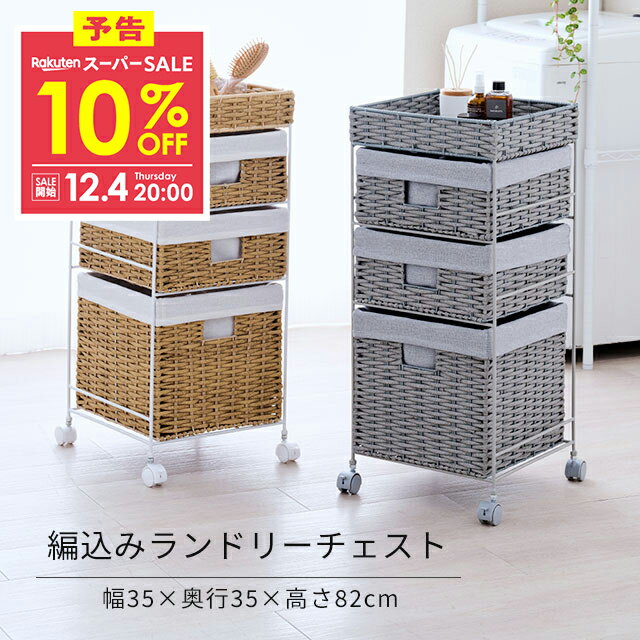 予告★12/4 20:00より★10%OFF★ サニタリー 収納 棚 3段 幅35 ランドリー収納 ラタン チェスト 引き出し バスケット カゴ かご 籠 ランドリーチェスト ラック 北欧 おしゃれ 完成品 キャスター 洗面所 ワゴン 衣類収納 脱衣所 タオル 小物 すき間 隙間 スリム AMC35-3F