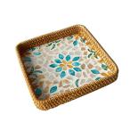 手編みのラタン製サービングトレイ ラタントレイ スクエア ボヘミアン 装飾トレイ コーヒーテーブル用 キッチン デザート ケーキ パン スナック用