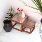 ミニチュアドールハウス ラタン調センターテーブル(大、小2点セット) ガラス風テーブル ミニテーブル おしゃれなセンターテーブル
