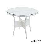 人工ラタンテーブル 強化ガラス 単品 白 丸テーブル 籐 家具 ファニチャー インテリア おしゃれ リビング table 机 アジアン バリ風 リゾート ホテル ベランダ