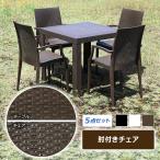 ラタン調 ラタンテーブル ラタンチェア プラスチックチェア ガーデンチェア ガーデンテーブル 5点セット 肘付きチェア テーブル幅約80cm UVカット 4脚 軽量