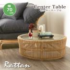 センターテーブル 幅70cm ラタンテーブル ローテーブル 丸テーブル 円形 籐 ラタン ガラス ナチュラル 天然素材 アジアン リゾート風 おしゃれ
