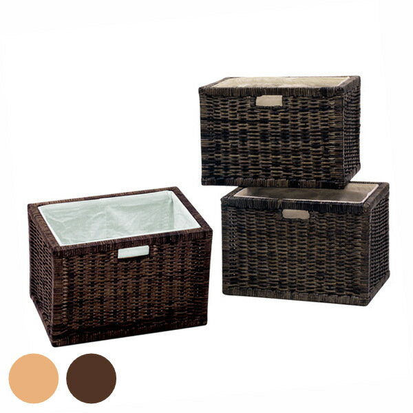 籐 バスケット 3個組 内布張り ラタン製 かご 約幅38cm ( 送料無料 ラタン ボックス 収納 カラーボックス インナーボックス 収納ケース 収納ボックス 3個 セット 角型 四角 インナーケース 小物入れ ナチュラル おしゃれ )