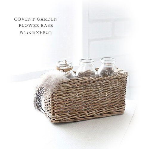 フラワーベース スリーボトル ラタンボックス フェザー付き 花瓶 花器 一輪挿し ガラス COVENT GARDEN