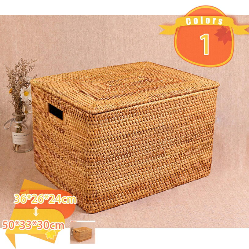 2000円OFFクーポン 収納バスケット 大容量 天然素材 藤かご 手作り オシャレ 卓上収納 服整理 雑貨入り スクエア バスケット カフェ 喫茶店 飲食店 おしゃれ 収納かご 小物入れ クローゼット 見せる収納 押し入れ収納 天然藤 収納ボックス fascimo