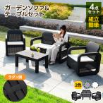ガーデン テーブル セット 4点 ガーデンファニチャー ラタン調 ねじなし 楽組 ガーデンソファ 屋外家具 ガーデン家具 庭