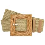 Elerevyo レディース 編み込みワイドストレッチベルト ストローラタンスクエア 木製 ドレス用ウエストバンド カーキ 60-82cm