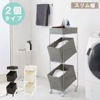 (タイムセール中) 洗濯カゴ おしゃれ 2段 スリム ラタン調 キャスター付き ランドリーラック ブラウン グレー ホワイト 白
