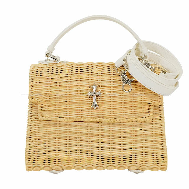 CHROME HEARTS クロムハーツ ドーリー 白 (ホワイト)/黒 (ブラック)/ナチュラル シルバー925 (SV925 Ag925) レザー/籐(とう) シルバー金具 ハンドバッグ SAランク【中古】(DOLLY Blanc/Noir/Naturel Silver925 (SV925 Ag925) Leather/Rattan Silver HW Handbag)