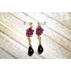 P1208-8S-RDGR-GN ピアス サージカルピアス アレルギー対応 金アレ ビーズステッチ 天然石 ガーネット クリスマス