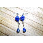 I1144BLU-RAP イヤリング 樹脂ノンホールピアス 金属アレルギー対応 金アレ ハンドメイド 天然石 ラピスラズリ ビーズボール 瑠璃