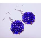 P1104-8S-BLU-SF ピアス サージカルステンレス アレルギー対応 金アレ 宝石質 サファイヤ 誕生石 9月 ステッチ フラワー 大ぶり