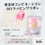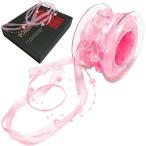 DIY ラッピング リボン オーガンジー サテン パール コンビネーション (P(ピンク))