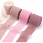 シフォンリボン 4個セット 5m 幅広 切りっぱなし フリンジコットンリボン 無地 布 ラッピングリボン (ピンク系, ピンク系)