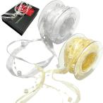 DIY ラッピング リボン オーガンジー サテン パール コンビネーション 2色セット (WI(ホワイト,アイボリー))