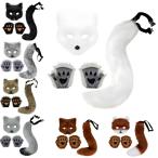 ハロウィン 仮装 コスプレ小物 猫耳 ねこ耳 尻尾 猫の爪 3点セット 猫しっぽ コスプレ カチューシャ式 仮面 狐 狐の尾 狐の爪 偽耳 獣爪 イベント 萌えにゃんこ