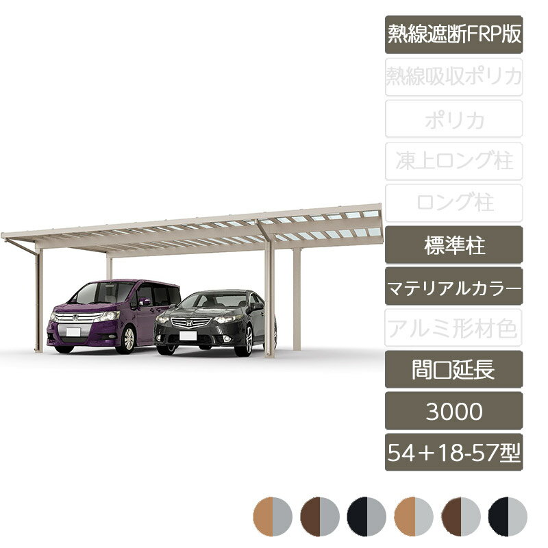 カーポート 2台用 リクシル LIXIL【ソルディポート3000 間口延長 54+18-57型 標準柱H23 ラッピング形材色 熱線遮断FRP板DR】
