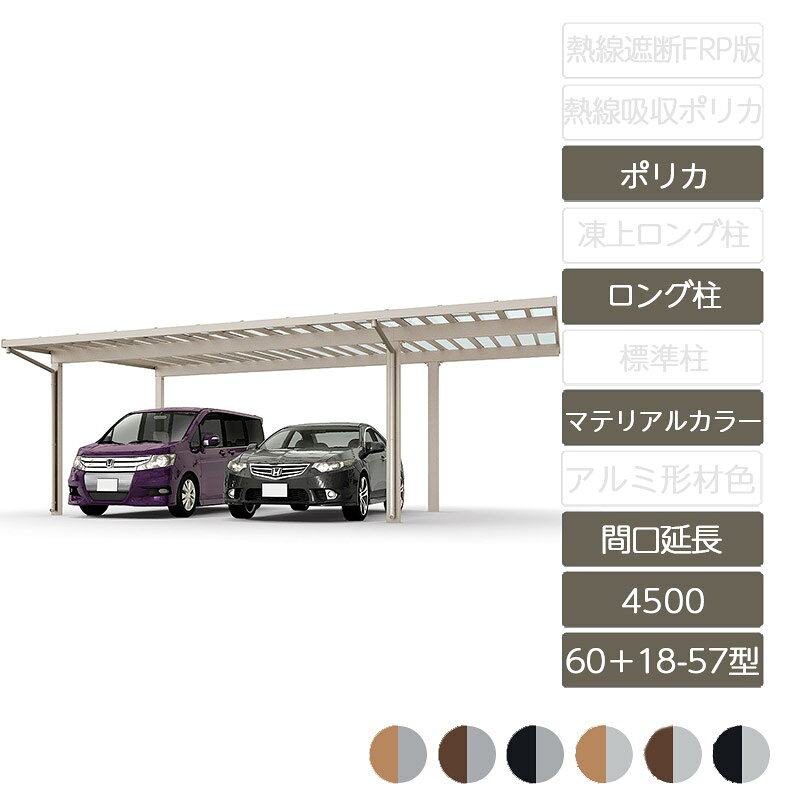 カーポート 2台用 リクシル LIXIL【ソルディポート4500 間口延長 60+18-57型 ロング柱H25 ラッピング形材色 ポリカーボネート】