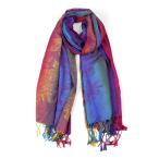 uxcell スカーフ 柔らかい タッセル ラップ ラップ マルチカラー フローラル グラデーションカラー スカーフ 女性用 ブルー 18x7cm