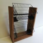 無垢材 ワイヤーバスケットシェルフ 2段 BIGカゴ付 玄関 リビング ナチュラル 収納 リビング 完成品 天然朴
