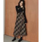 ワンピース フリンジラップ風 チェック柄ワンピース