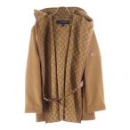 ルイヴィトン モノグラム柄 レザートリム ベルテッド フーデッド シルク混 ウール ラップコート ブラウン レディース FJC020QWE