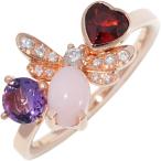 ショーメ 指輪 K18PG ピンクオパール ガーネット アメジスト ダイヤ アトラップモアリング ハート 08189