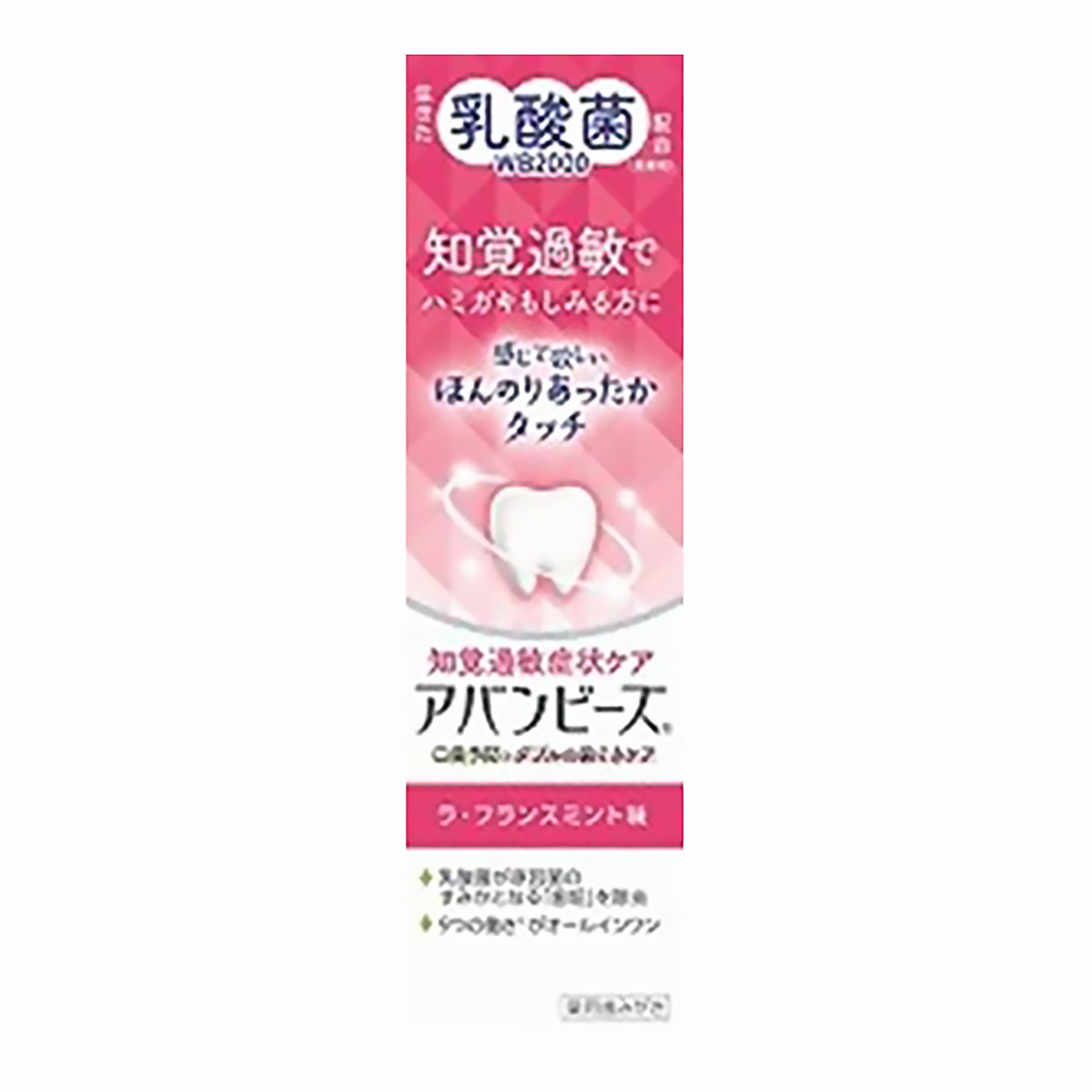 【送料込・まとめ買い×100個セット】わかもと製薬 アバンビーズ 知覚過敏症状ケア ハミガキ ラ・フランスミント味 80g 薬用 歯みがき 医薬部外品