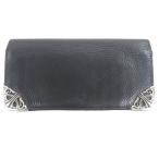 良品▼CHROME HEARTS クロムハーツ ジュディ レザー クロスボタン スクロールラベル ロングウォレット 長財布 ブラック シルバー メンズ