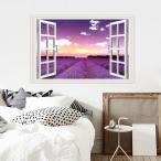 ウォールステッカー おしゃれ 北欧 紫 ウォールシール トイレ かわいい 窓 景色 ラベンダー 風景 はがせる インテリア 壁飾り ステッカー 山 お花畑 花壇 森 森林 窓の景色 朝日 早朝 朝 太陽 光線 雑貨 写真 大きい インテリアステッカー 癒し インスタ映え バスルーム 自然