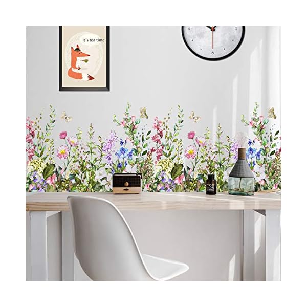 花と蝶のウォールステッカー自然風景春の庭園デザインバラの花・ポピー・デイジー・ラベンダー・チューリップ春緑葉植物鳥野菊の花はがせる壁紙シールインテリア装飾はがせるおしゃ…