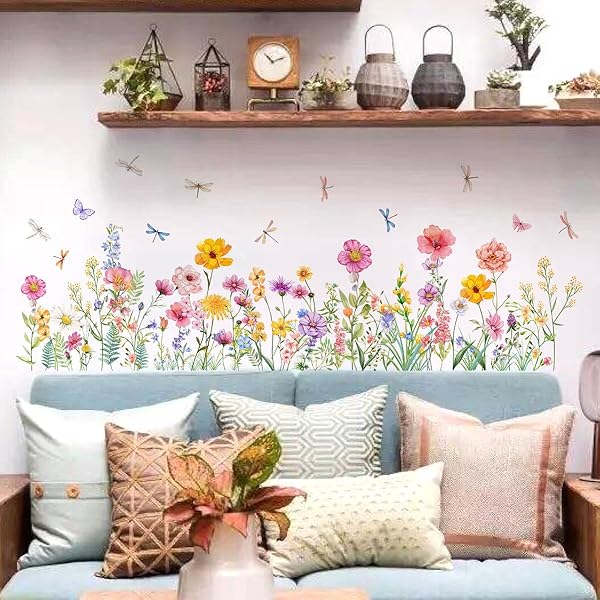 ウォールステッカーピンク花と蝶自然風景寝室リビングインテリア装飾春の庭園デザイン春緑葉植物鳥観葉植物野菊の花ポピーデイジーラベンダー壁紙シールはがせるおしゃれシール式ス…