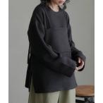 ニット セーター 袖スリットバイカラークルーネックリブニット レディース
