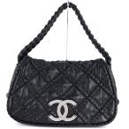 【栄】シャネル チェーンショルダーバッグ 18番台 マトラッセ ココマーク ラムスキン ブラック シルバー金具