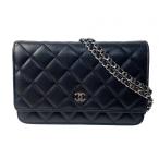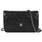 シャネル マトラッセ チェーンウォレット ラムスキン ブラック シルバー金具 A33814