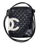 シャネル CHANEL カンボンライン ショルダーバッグ ミディアム A25178 ブラック×ホワイト シルバー金具 ラムスキン レディース 中古
