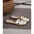 サンダル 「Jasmine」チェーンスクエアトゥぺたんこサンダル レディース